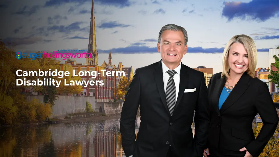 A Cambridge long-term disability lawyer helps individuals who are unable to work due to illness or injury pursue the long-term disability benefits available under their insurance policy. Many people face denied disability claims, complex paperwork, and pressure from disability insurers while dealing with serious medical conditions such as chronic pain, mental illness, spinal cord injuries, or brain injury. The Cambridge personal injury team at Auger Hollingsworth Accident & Injury Lawyers provides professional service and experienced legal guidance to help insured persons challenge disability claim denials and secure the insurance benefits they are entitled to.